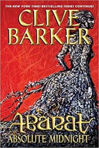 Abarat: Absolute Midnight is the third book in the Abarat series by Clive Barker. If you’re coming to this book fresh, without reading the first two, you may be a little lost at first, but Mr. Barker does a wonderful job of bringing you up to speed. To sum up briefly: Candy Quackenbush, a sixteen year old from Chickentown, Minnesota, finds herself transported to the islands of the Abarat, an archipelago – or island chain – where every island exists at a different hour of the day. Here she has had adventures made great friends, like Malingo the geshrat – a reptilian creature who walks on two legs and has ears that act as large leather wings – as well as many others.